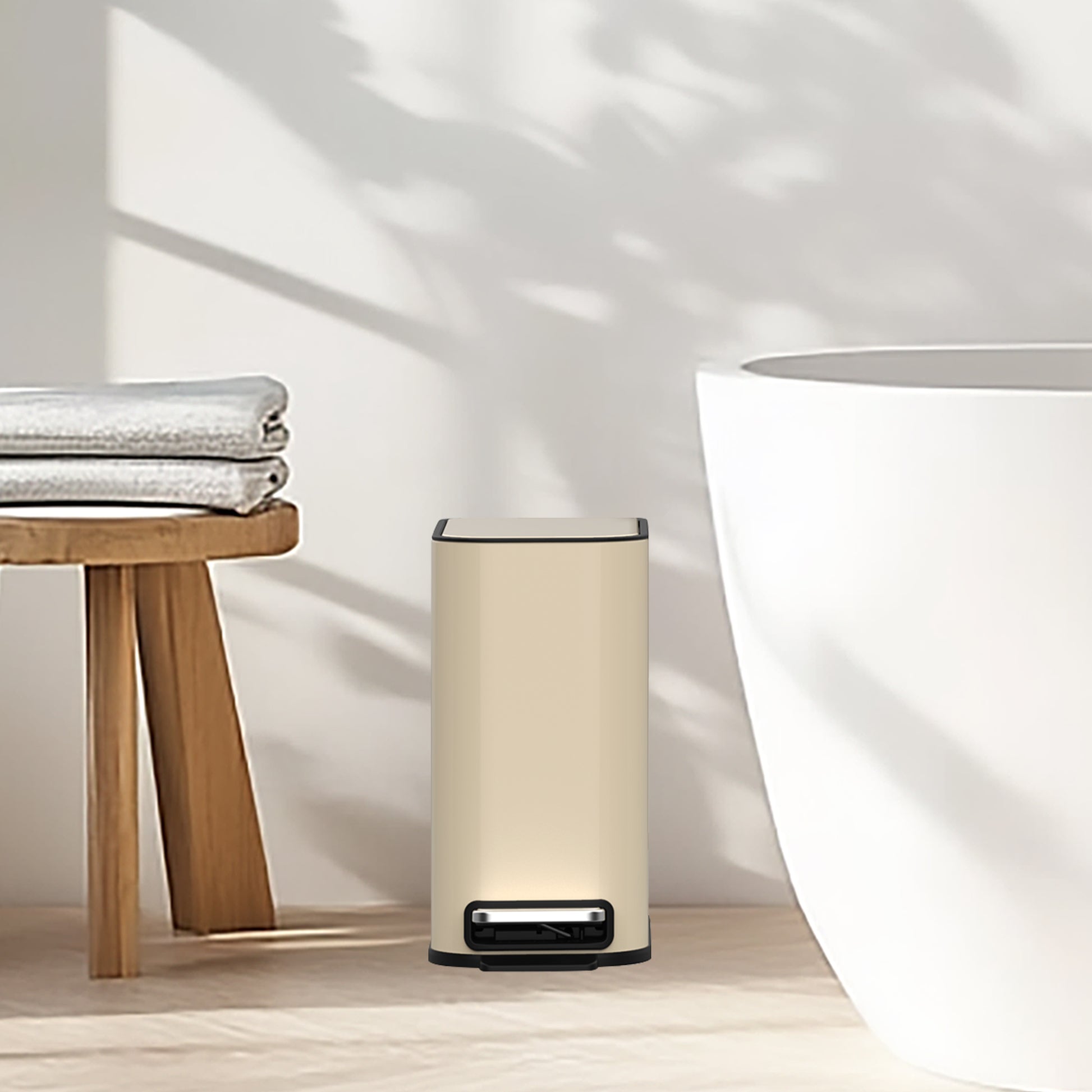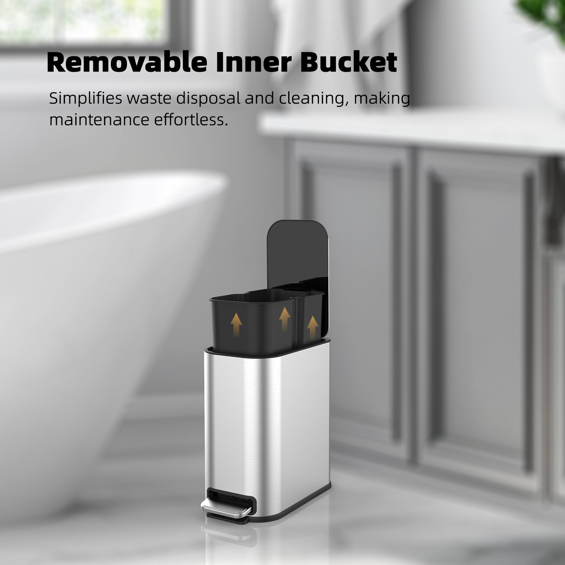 Compact 1.3-Gallon Capacity: Ideal for small spaces, this stainless steel trash can is perfect for bathrooms where space is limited, but waste disposal is essential.