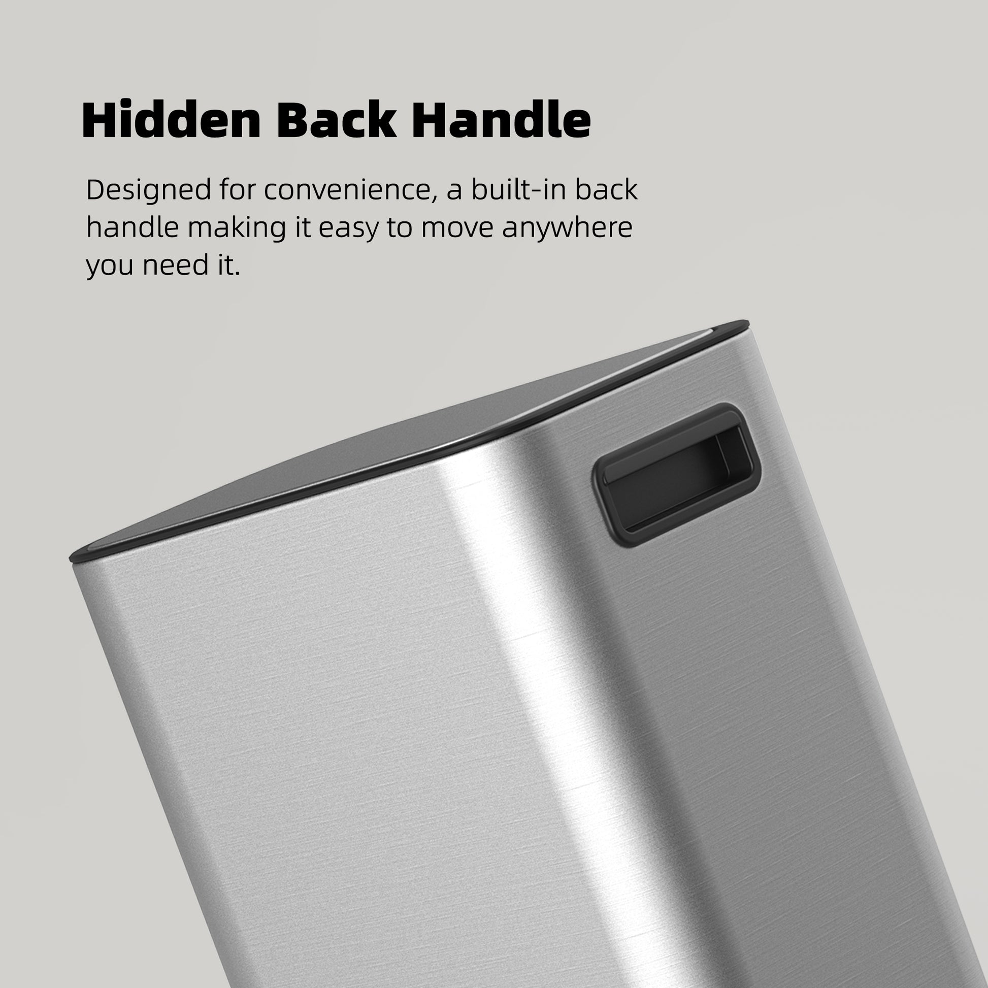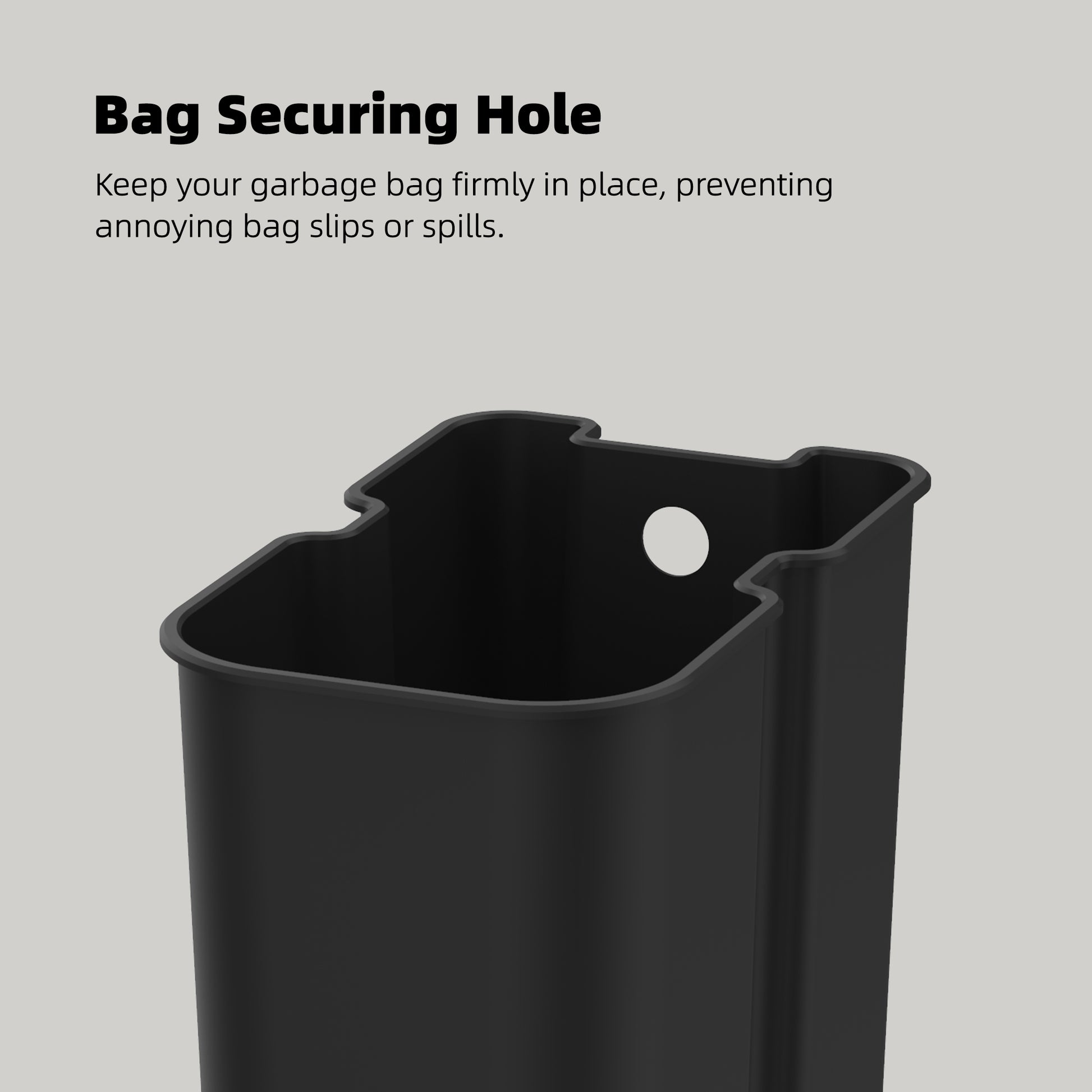 Designed for narrow spaces, BinMax 1.3-gallon stainless steel garbage can fits perfectly in the tightest corners of your bathroom. Its sleek, fingerprint-resistant exterior keeps your home looking polished, while the sealed bottom ensures no leaks or messes, protecting your floors from spills. The silent-close lid and durable foot pedal add to its convenience, making waste disposal effortless. With a stay-open lid feature, rear handle for easy movement, and a secure liner system, this trash can makes your bathroom clutter-free and elegant. These well-thought-out design ensures BinMax provides both style and practicality for your home’s waste management needs. Optimize your bathroom space with BinMax – Order now and bring elegance and efficiency to your home!